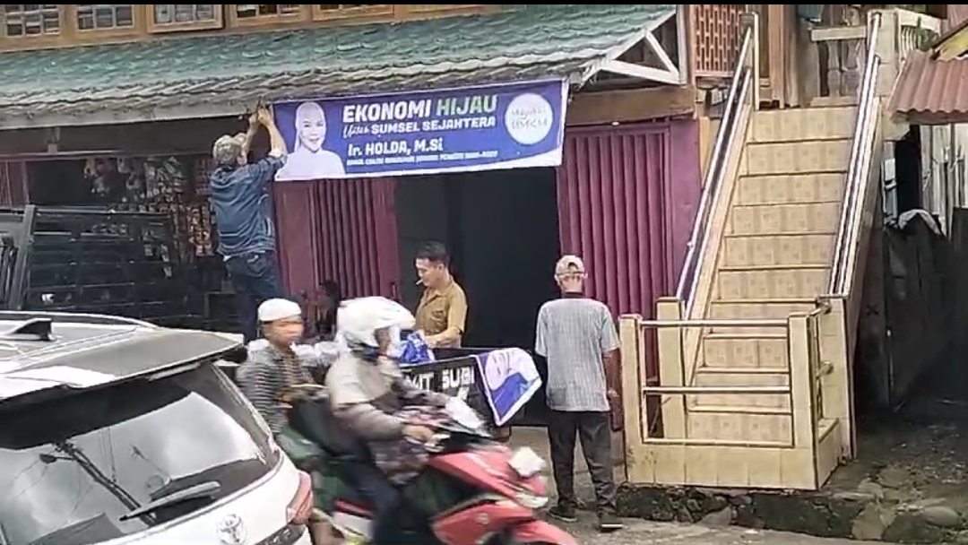 Menurut informasi dari warga setempat baleho tersebut di pasang oleh relawan-relawan Cagub Sumsel Ir.Holda dibeberapa titik yang sangat strategis.