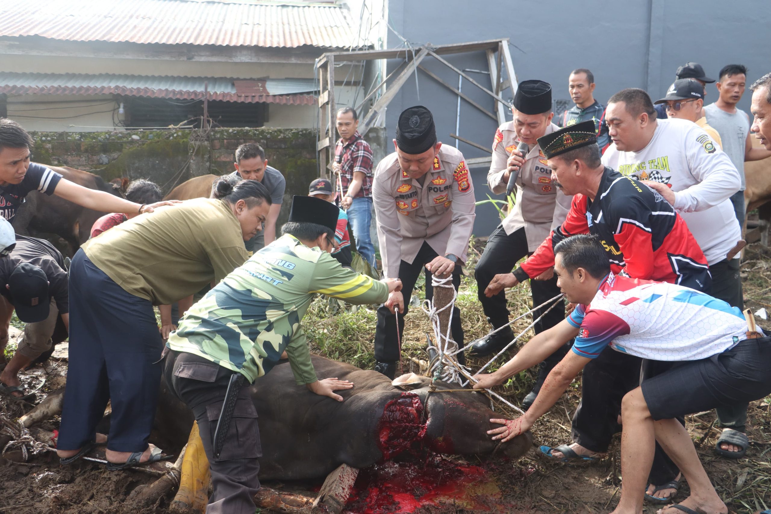 Kegiatan penyembelihan dan pembagian hewan kurban ini berjalan dengan lancar dan aman, berkat kerja sama yang baik antara Polres Lahat dan masyarakat.