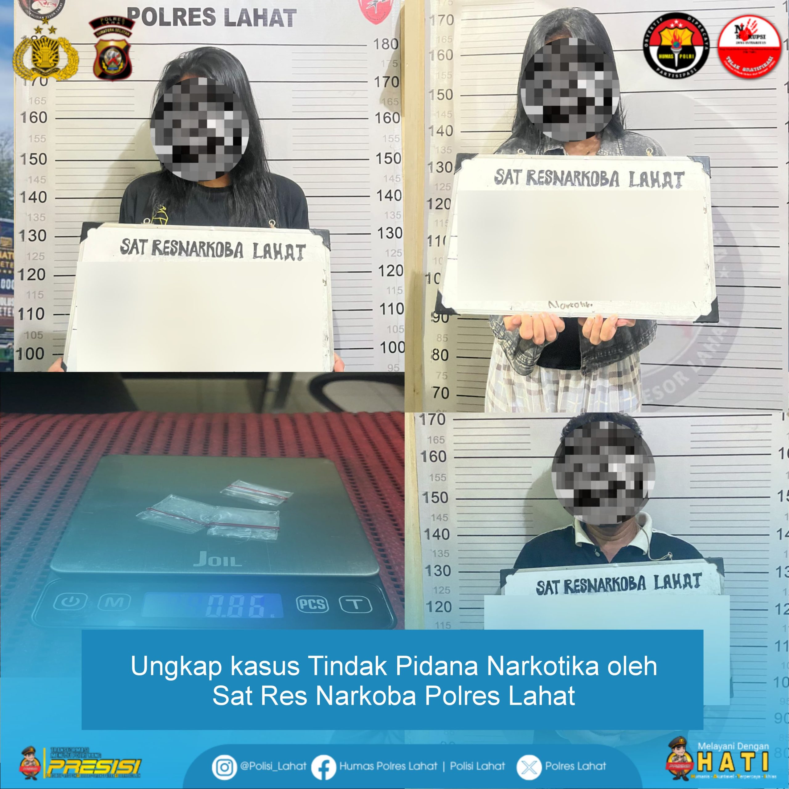 Dijelaskan pula bahwa di Desa Karang Anyar Kecamatan Lahat Selatan Kabupaten Lahat sering dijadikan tempat transaksi narkotika jenis sabu, sehingga begitu mendapat informasi itu pada hari Rabu tanggal 18 Juni 2025 sekira jam 18.00 Wib Kasat Res Narkoba Polres Lahat memerintahkan anggotanya untuk melakukan penyelidikan dan penangkapan terkait tindak pidana narkotika jenis sabu tersebut, kemudian berhasil diamankan 3 (tiga) orang an. HENDRO SAWOLO Bin HERI SUGIHARTOYO, YENSI NOVALIA Binti ALWI dan RIA ARSITA Binti IDIRMAN (Alm),” terangnya.
