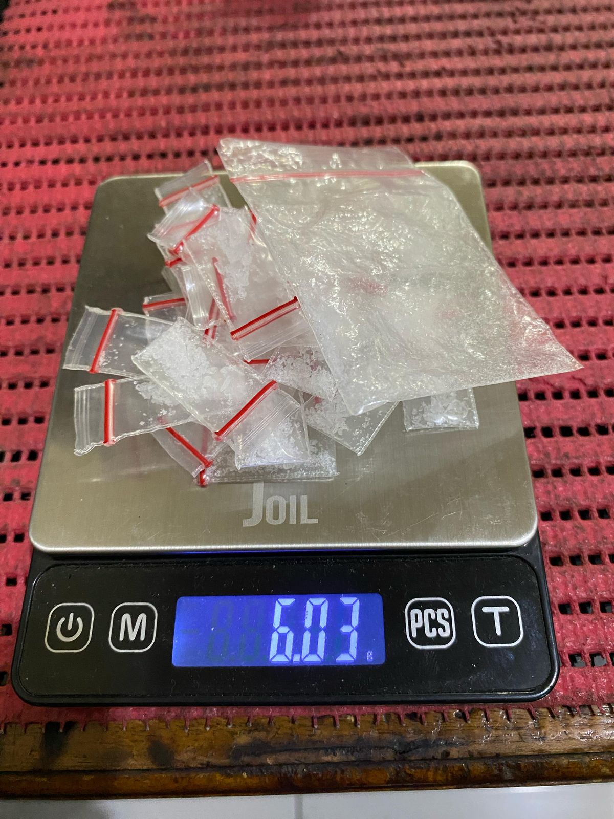 – 30 paket kecil serbuk kristal putih yang dibungkus plastik klip transparan diduga narkotika jenis sabu dengan berat bruto 6,03 gram,
