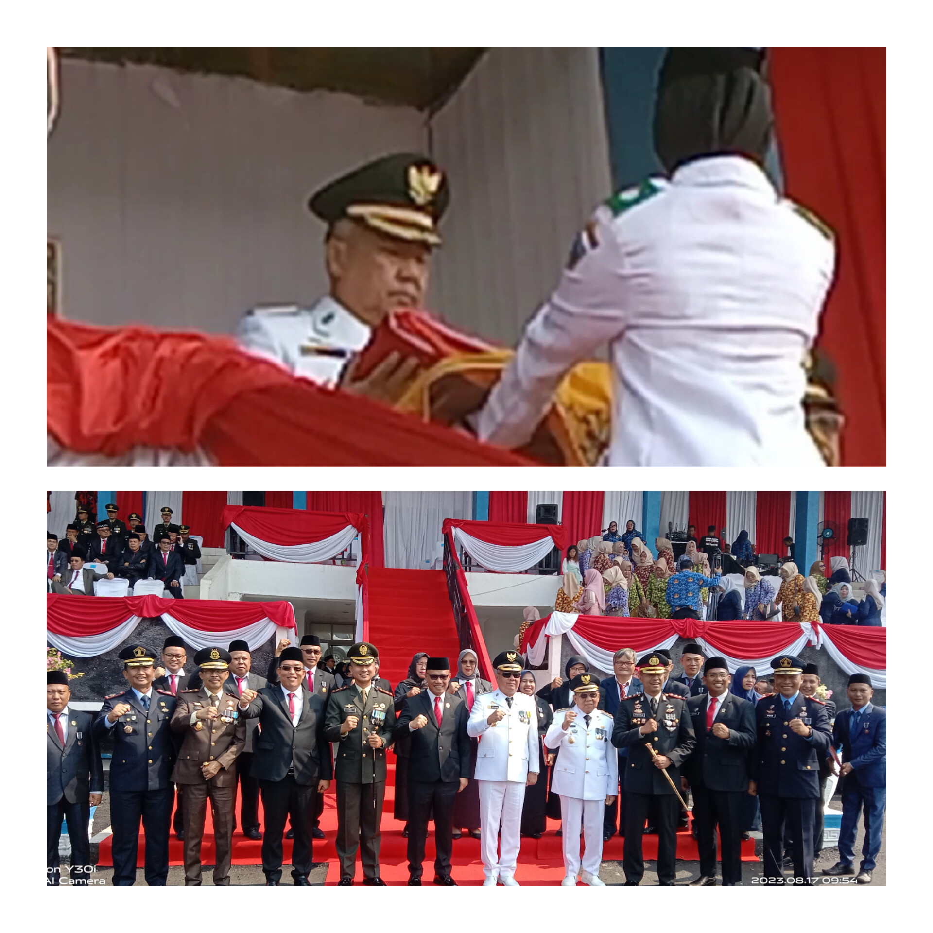 Selesai upacara HUT RI ke 78 Bupati Lahat CIK Ujang SH megucapkan syukur alhamdulillah sudah selesai melaksanakan upacara kenaikan bendera merah putih dalam rangka puncak HUT RI ke 78 tahun 2003.