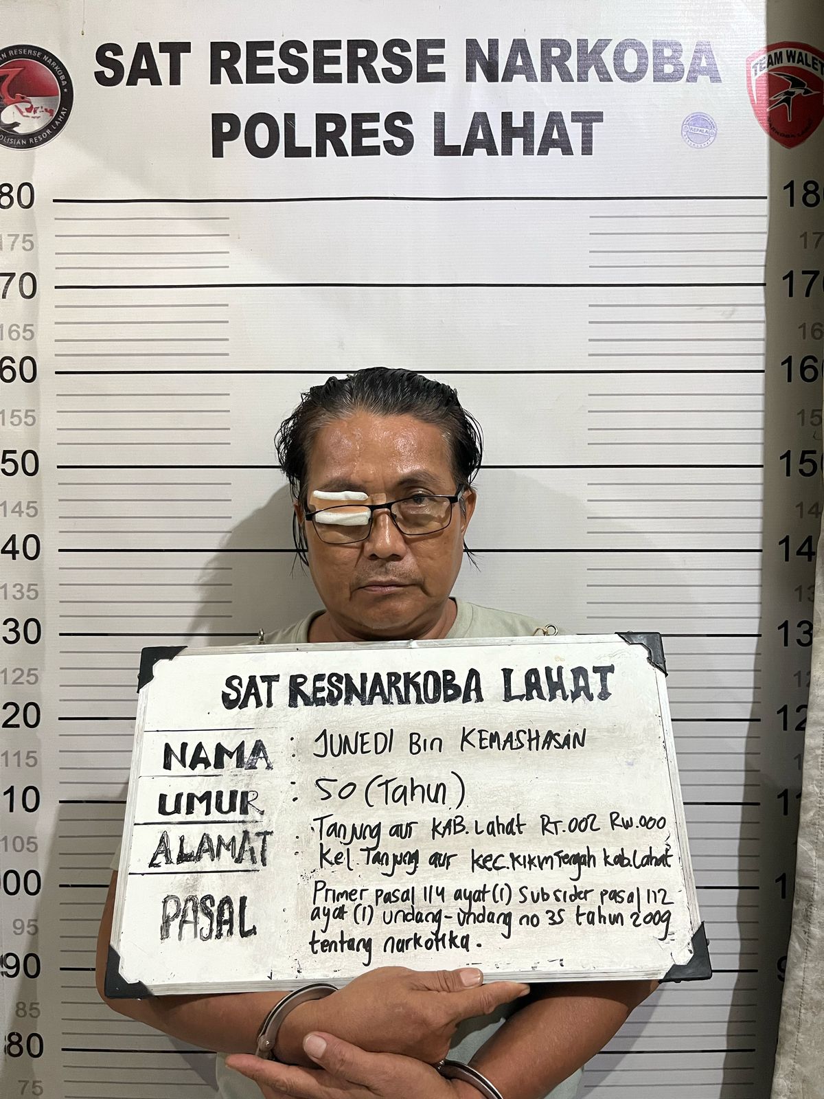 Polisi menjelaskan bahwa tersangka adalah JUNEDI Bin KMS HASAN alamat